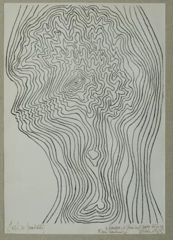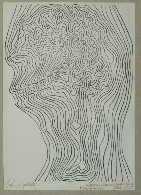 Con estas palabras, Corrado Cagli arroja luz sobre las obras en las que, como en esta prueba de autor para Adán, intenta sondear las profundidades del alma humana mediante un peculiar motivo lineal que recuerda a las curvas isométricas o isobáricas. En el laberinto gráfico de perímetros concéntricos con el que Cagli representa el perfil del primer hombre, se expresa la insondabilidad de la psique humana.