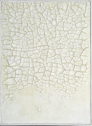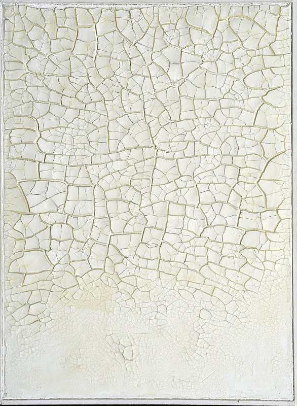 La obra que aquí se presenta consiste en una superficie blanca, sobre lienzo, surcada por un dibujo de hendiduras. Fechada al dorso, con la dedicatoria a pincel "a INGRAO / Con amistad / BURRI 77", forma parte de la serie Cretti, entre las obras más famosas del artista y del arte del siglo XX. A partir de los años sesenta, y de forma más sistemática a partir de 1973, el artista, que ya experimentaba con el arte matérico e informal con distintos materiales como alquitrán, sacos, plásticos, hierro y madera, empezó a crear estas superficies monocromas aplicando una gruesa capa de caolín, resinas, pigmento y vinavil sobre soportes bidimensionales que, durante el proceso de secado, daban lugar a un dibujo de grietas, similar al craquelé de las pinturas antiguas. Burri también realizó Crettos en versiones monumentales, a partir de 1976, con el Grande Cretto Nero para el Franklin D. Murphy Sculpture Garden de la Universidad de California en Los Ángeles y, más tarde, con el Grande Cretto para el Museo Capodimonte de Nápoles. Pero el más conocido, también por el fuerte impacto simbólico y paisajístico que asumió, es el Cretto rectangular creado en 1981 para el emplazamiento de la antigua ciudad siciliana de Gibellina, destruida en 1968 por el desastroso terremoto de Belìce. La idea era crear una obra de land art, es decir, un único y monumental Cretto rectangular blanco, de aproximadamente 300 x 400 metros, que cubriera parte de las ruinas, interviniendo concretamente en la definición del paisaje. Las obras se iniciaron en agosto de 1985 y se prolongaron hasta 1989, para concluirse por completo en 2015. El último gran cretto Nero e Oro de Burri se presentó en el Museo Internacional de Cerámica de Faenza en 1993.