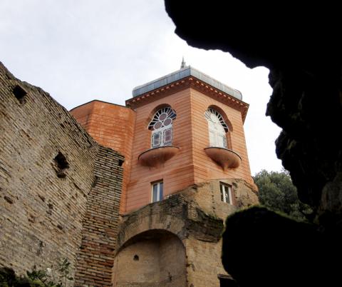 È uno scenario storico naturalistico da ammirare lungo il percorso di visita insieme alla vista, dal basso, della Torre, imponente costruzione caratterizzata da ampie finestre con intelaiature in ghisa e vetri colorati che nascondono, all’interno, pareti riccamente decorate da stucchi policromi.