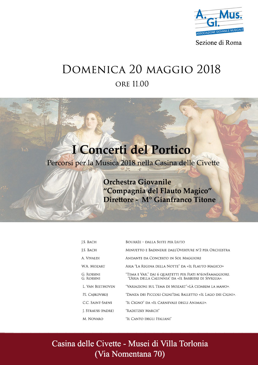 Il concerto all’ interno della manifestazione “ I CONCERTI DEL PORTICO. PERCORSI PER LA MUSICA 2018 NELLA CASINA DELLE CIVETTE “ si svolgerà nel giardino della Casina delle Civette.