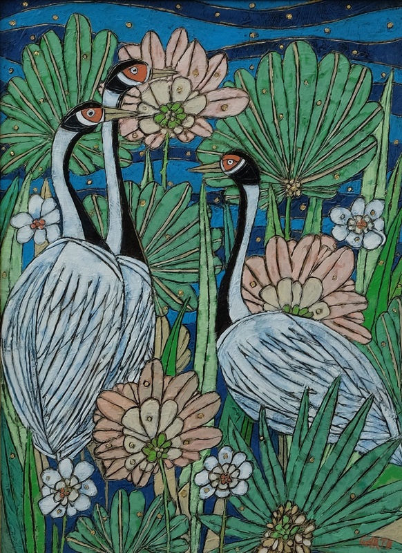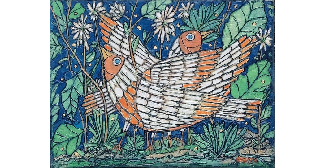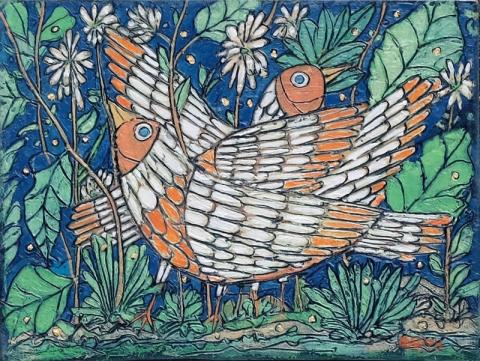 Garth Speight, Coppia di uccelli, acrilico, cm. 35x25