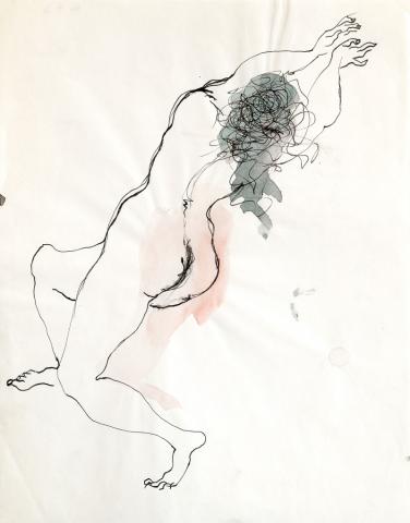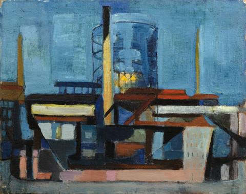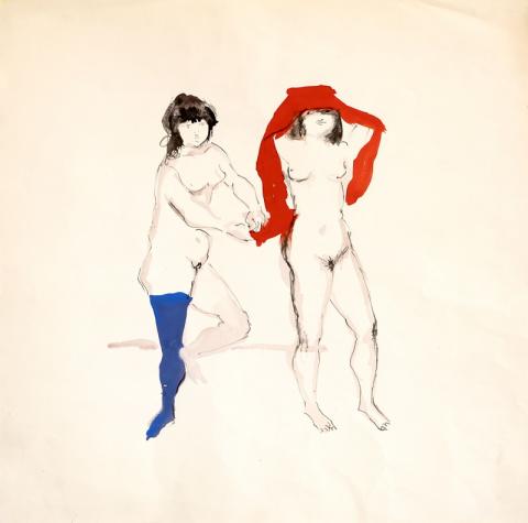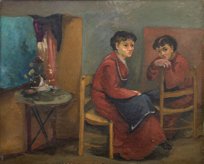 Negli anni del dopoguerra, oltre a dedicarsi intensamente all’insegnamento, prima a Modena e poi all’Istituto d’arte applicata di Roma dove fondò la sezione di disegno su tessuto, Katy Castelluccisi dedicò anche alla scenografia e ai costumi teatrali. Presente alla VI Quadriennale nel ’51, insieme al padre, nello stesso anno in una mostra personale alla Galleria dello Zodiaco presentò i suoi quadri neocubisti, all’interno di una tendenza allora diffusa in Italia di rilettura della cultura europea: opere con un impianto originale, dove i tagli netti delle immagini si coniugano con i valori tonali. Consapevole dei profondi mutamenti che stava attraversando la pittura, ridusse drasticamente il suo impegno in questo ambito e dalla fine degli anni ’50 rinunciò a partecipare alle mostre a cui era invitata. Alla fase neocubista seguirono alcuni tentativi astratti più sperimentali non destinati a reali intenzioni espositive, di cui una parte è qui in mostra per documentare il suo insegnamento all’istituto d’arte. Moltissimi invece, fino agli ultimi anni della sua vita (l’artista si spense a ottant’anni a Roma nel dicembre 1985), furono i disegni, tanti e di grande qualità, per la maggior parte autonomi dalla pittura, dove il tratto sfumato e ombreggiato dei primi anni, diviene via via più incisivo ed essenziale.
