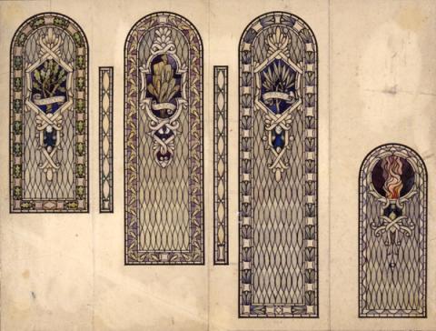 Altri bozzetti hanno soggetti floreali o decorativi, come quelli con "Rose e farfalle", preparati per l'esecuzione delle vetrate del "Balcone delle rose", al piano superiore della Casina delle Civette.